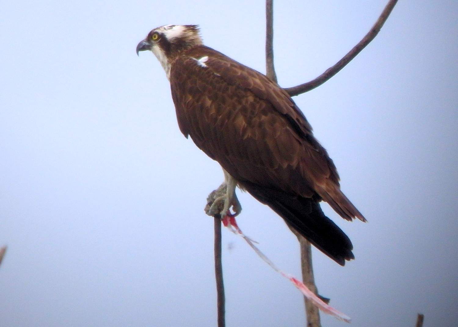 Je pense qu’il a plutôt croché le ruban dans les bois, où nous en avons mis à plusieurs endroits dans les allées pour protéger l’accès à l’aire. Il a pu croire qu’il s’agissait d’un poisson rouge