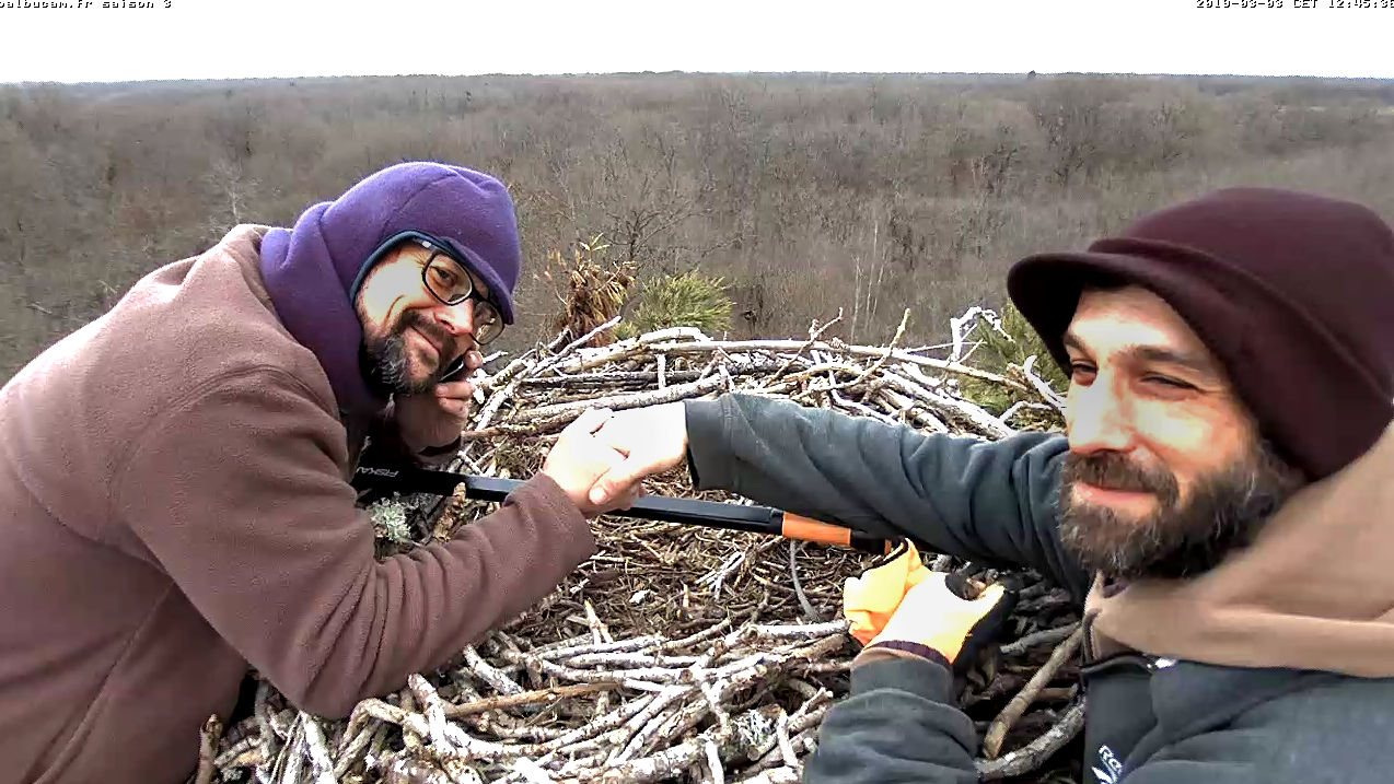 C’est merveilleux de vous retrouver. Je vois qu’il y a un nouveau sur l’aire. Jean-Marie l’appelle 32. J’espère que les péripéties de l’année dernière seront loin et que nous verrons des petits cette année. 32 refait le nid avec l’espoir d’une femelle. Les photos sont très belles.