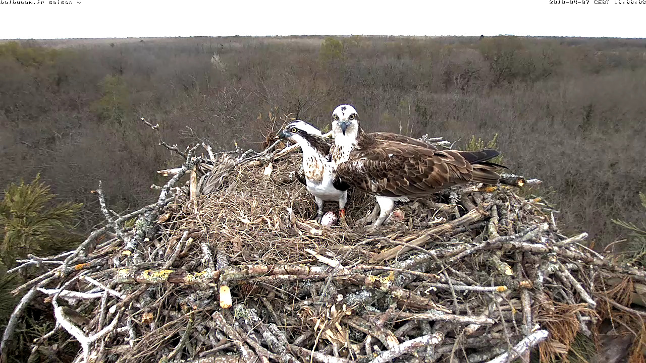 Bienvenue Osprey sur le forum, l’année dernière la première ponte avait été constatée le 08 avril au matin. On devrait voir le prochain oeuf le 09 avril.