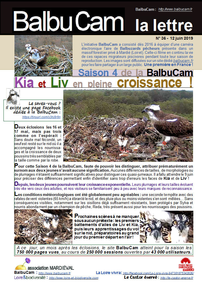 Je viens simplement vous dire mon plaisir et mon admiration sur l’élevage des petits balbuzards avec leurs parents. Un pur régal visuel et une merveilleuse découverte sur la vie quotidienne de nos magnifiques animaux. Les oiseaux font partie de mes animaux préférés. Tous mes compliments pour la qualité de votre projet et votre gentillesse à nous offrir les plus beaux moments de vie de nos amis ! Excellente Continuation à vous Tous.