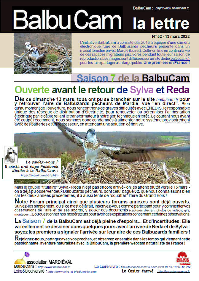 Actions, Balbuzard pêcheur, structure BalbuFête Saison 6 : Prolongation 11 mai 2021 Jean-Marie 5 Comments