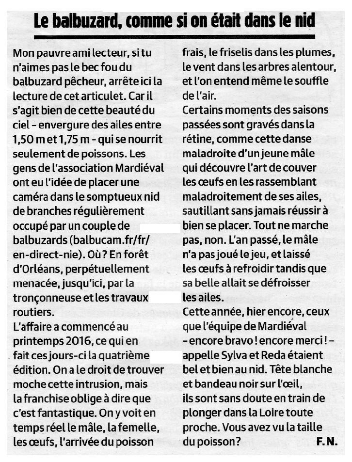 Le journaliste écolo radical, co-animateur du mouvement « Nous voulons des coquelicots », a publié dans Charlie Hebdo ce billet aimable où l’on voit que le méchant polémiqueur est tombé sous le charme du site préféré des Balbuzards pêcheurs !