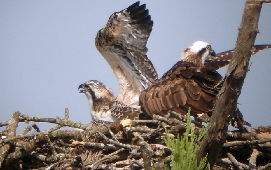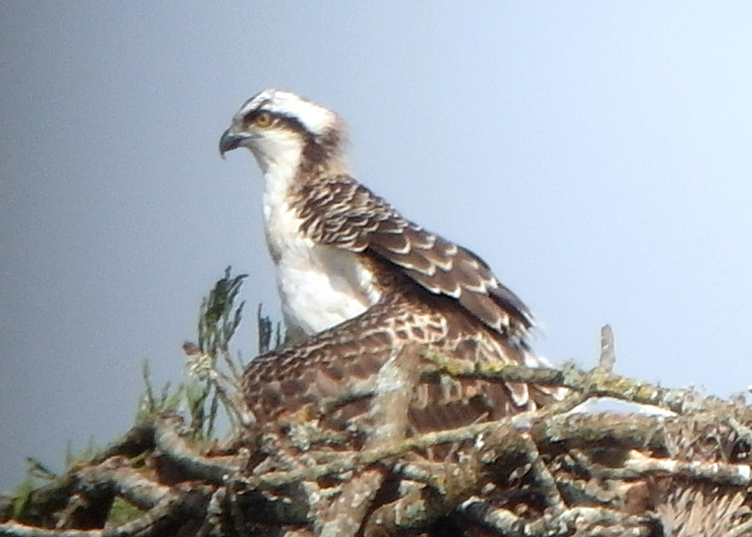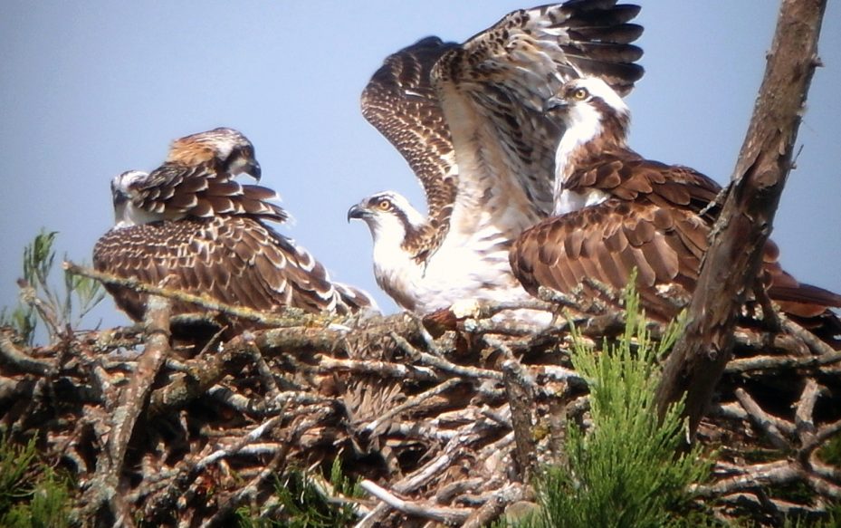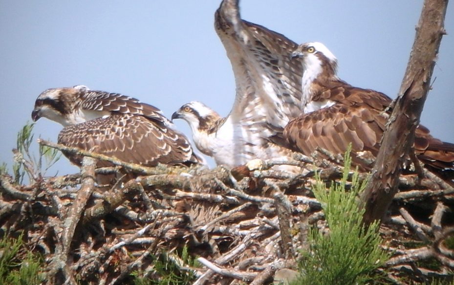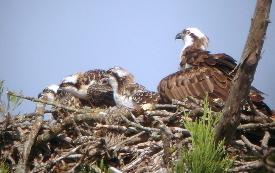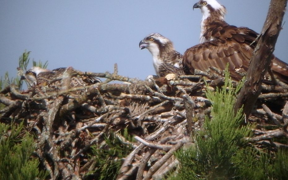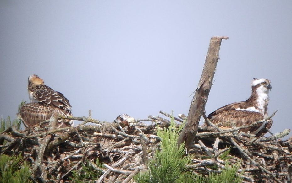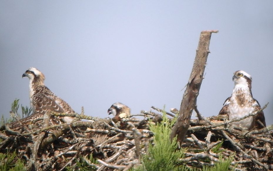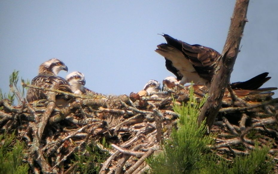 Sous l’œil distrait de Sylva, Lény et Jéry somnolent plus ou moins au fond du nid, tandis que Kali en équilibre sur le bord sud du nid contemple le vaste paysage.