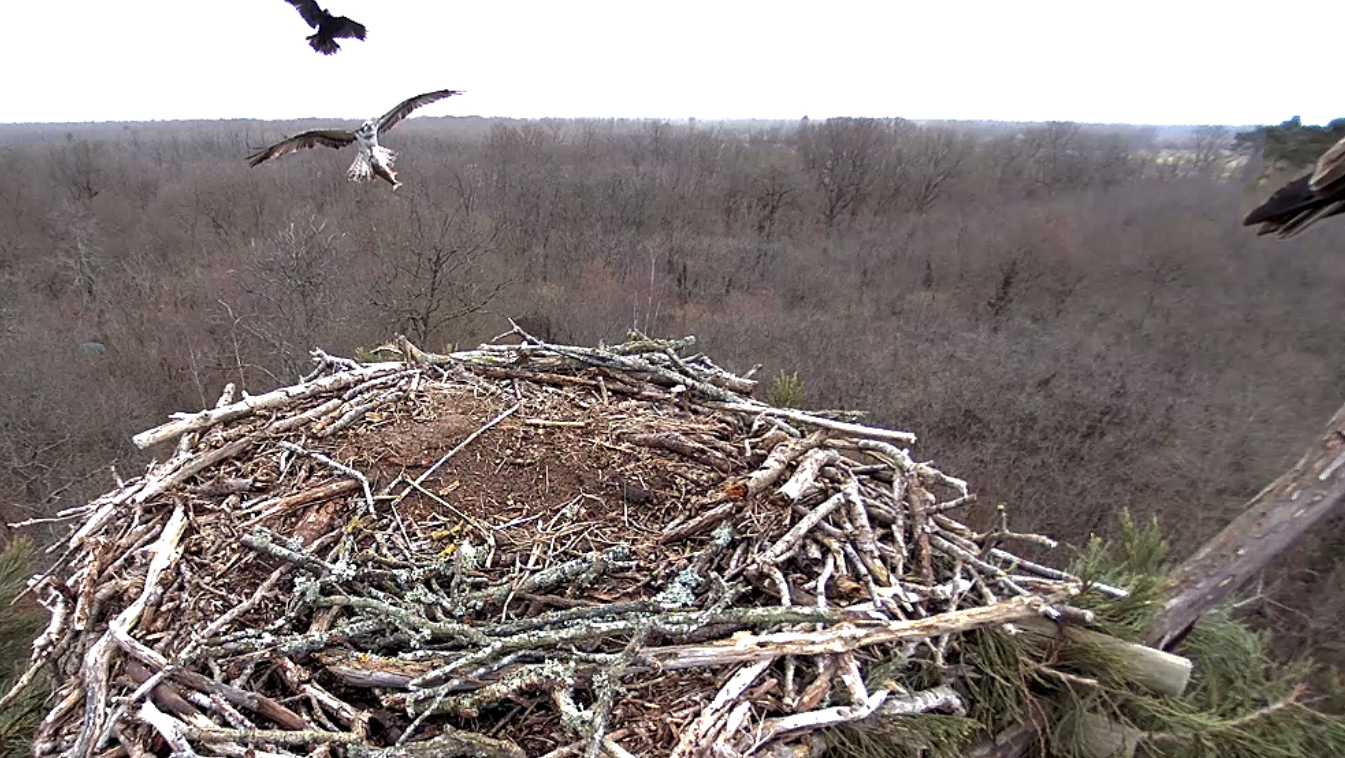 L’aire du Grand Bois a vu tranquillement le retour de la reine de l’aventure, puis celui de son jeune compagnon : alors que nous venions de mettre en ligne le « En direct » de la BalbuCam, et que nous y assistions à une tentative de « squatt » d’une tierce femelle contestée par au moins deux autres, Sylva a fait son apparition le 15 mars à 13 heures. Quelques minutes après, celle qui s’y était invitée avait abandonné l’aire. Et une demi-heure après, Sylva devait faire face à une ultime et spectaculaire provocation avant de reprendre la haute main sur l’installation.
