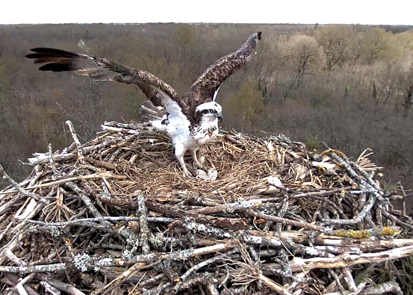 Plus tard, on la vit même forcée à s’envoler un moment pour éloigner un indésirable, laissant brièvement ses trois œufs à découvert.