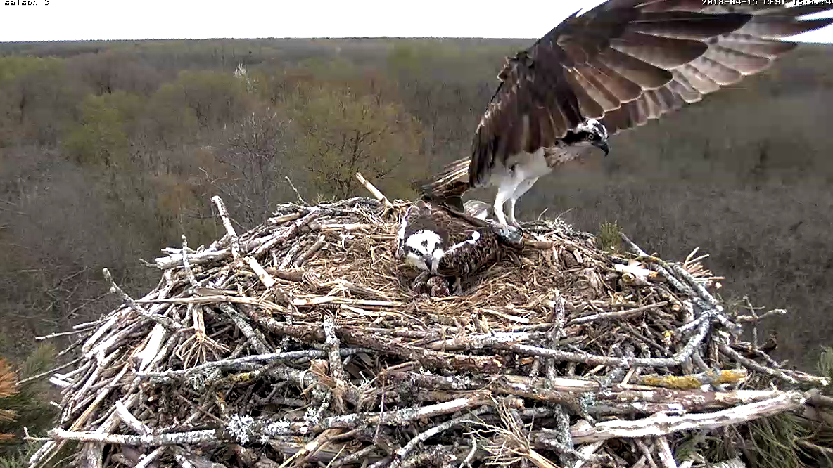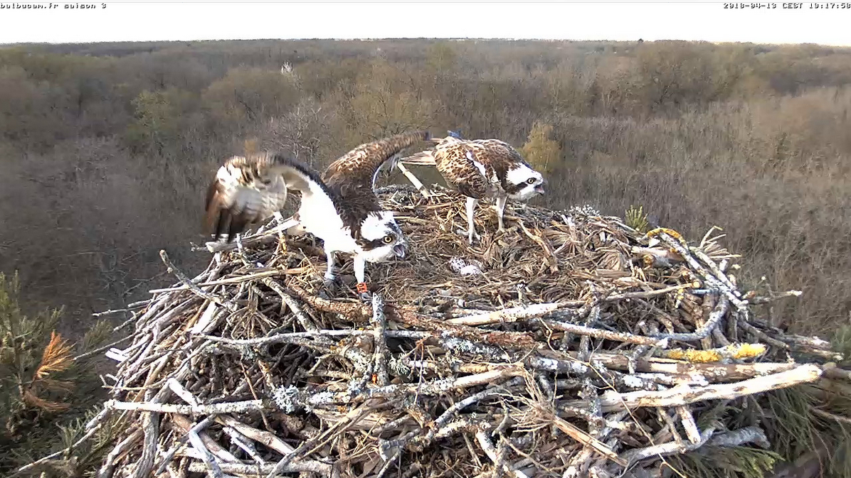 En réponse aux questions qui se multipliaient sur le forum, nous avons indiqué que la femelle ne pouvait pas tenir plus de trois jours sans s’alimenter et s’hydrater. A défaut des apports de son compagnon mâle, il lui fallait soit quitter l’aire un certain temps en laissant sa couvée exposée aux prédations et aux intempéries, soit accepter un nouveau compagnon mâle disposé à satisfaire ses besoins. Certes, la couvaison était menacée, mais l’absence de mâle après les éclosions signerait une catastrophe inévitable.