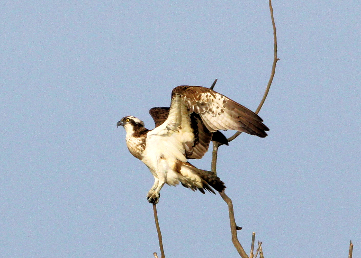 Dès le 15, il tournait sans arrêt dans le secteur, passant et repassant près de l’aire ; et se présentait de plus en plus sur l’aire elle-même, souvent avec un reste de poisson. Ce qui provoquait à chaque fois les cris de protestation de la femelle, voire sa « mise en défense »…