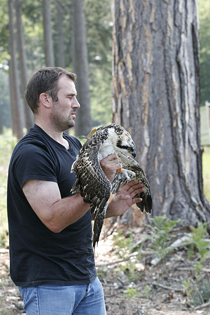 Suite à l’accord donné par le Ministère de l’Environnement et du Développement Durable, une balise Argos est posée sur un balbuzard immature. François Baillon, ingénieur à l’Institut de Recherche pour le Développement (I.R.D.), qui conduit cette expérience avec l’appui du Groupe Pandion, espère ainsi améliorer la connaissance sur le comportement et l’écologie du balbuzard. Les interrogations qui subsistent sur l’émancipation, l’apprentissage de la pêche, le départ en migration et l’écologie sur les quartiers d’hivernage, trouvent quelques réponses grâce à ce suivi. Grâce aux opérations de baguage qui ont lieu dans plusieurs pays d’Europe, certains aspects de la migration notamment sont déjà connus. On sait ainsi que les juvéniles stationnent généralement 2 à 3 ans sur les sites d’hivernage avant de tenter leur première reproduction en Europe.