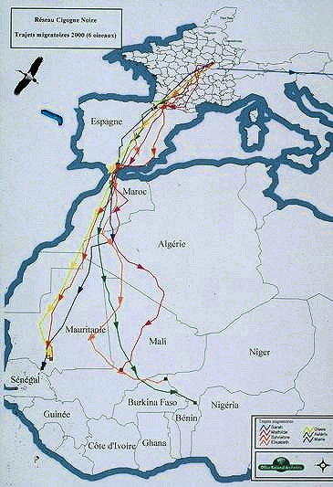 Pour vous donner une idée « synoptique » des caractéristiques de ces vols migratoires, nous emprunterons plutôt les données à des études plus significatives sur un plan statistique, portant sur ces magnifiques oiseaux que sont les Cigognes noires (études relayées sur un site de l’ONF) :